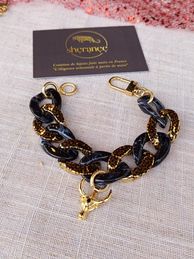 Le bracelet Raaga est une pièce forte et élégante, pensée pour sublimer vos tenues avec style. Ses maillons en acrylique créent un contraste audacieux et tendance, parfait pour apporter du caractère à un look sobre ou compléter une tenue plus affirmée.