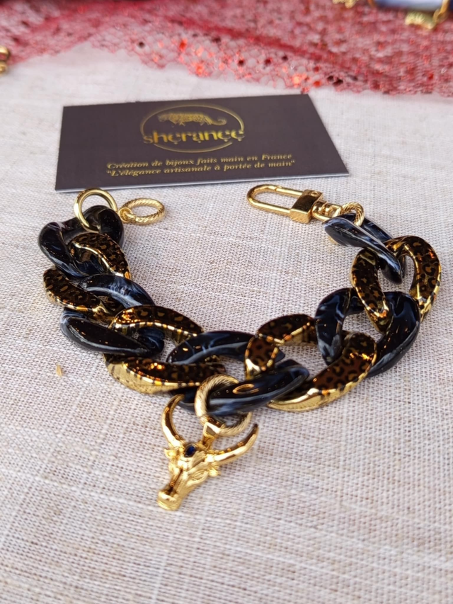 Couleurs : noir marbré et léopard doré, marron et noir