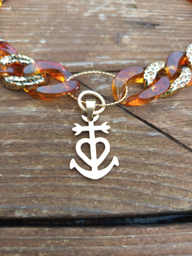 - Pendentif : Croix de Camargue en acier inoxydable plaqué or 18 carats (30 x 20 x 1,5 mm) apporte une touche solaire et intemporelle.