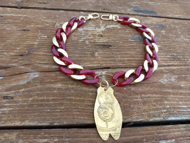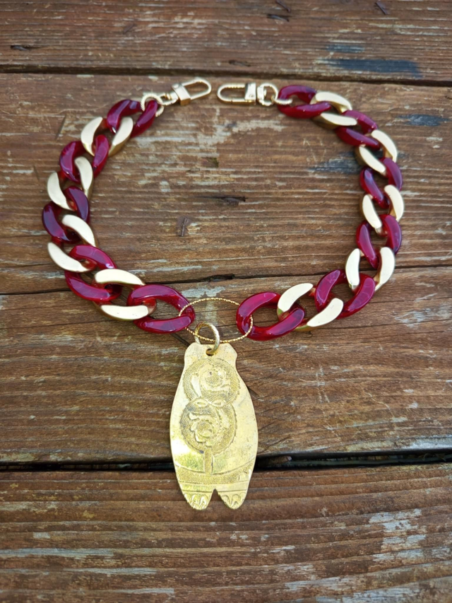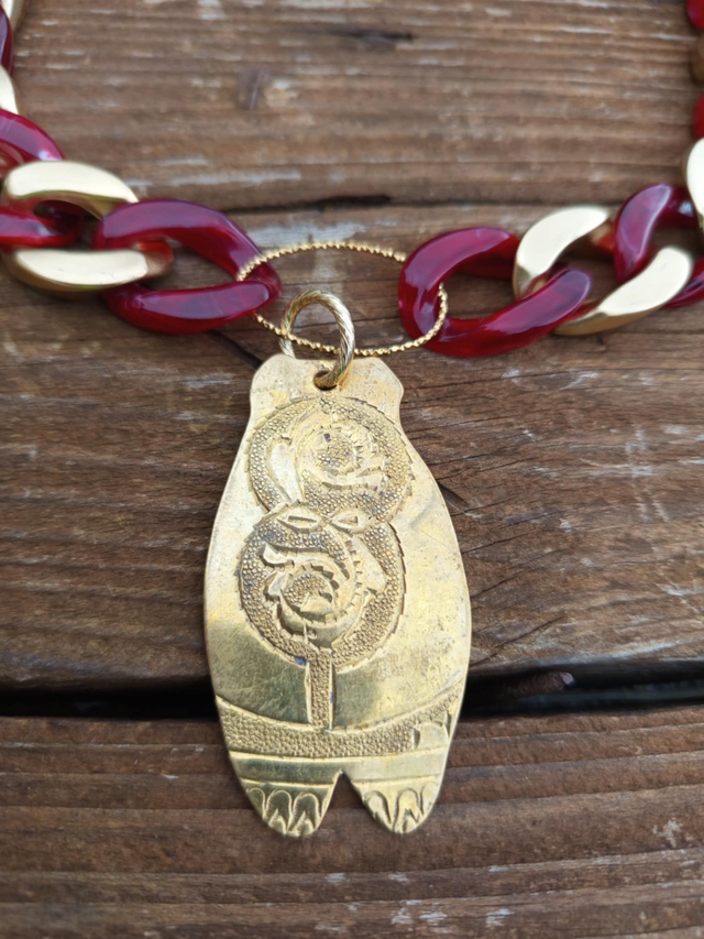 Au centre, un pendentif cigale, entièrement façonné à la main, devient le symbole solaire du collier : un porte-bonheur du Sud, un chant suspendu, une ode à la lumière.
